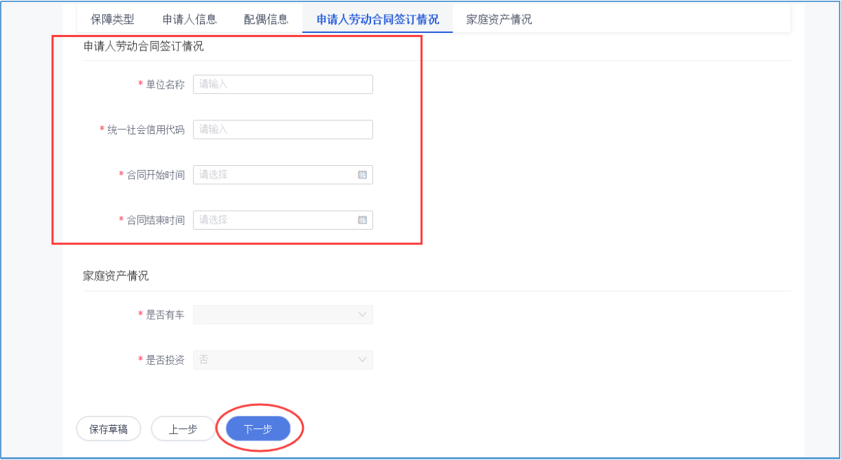第8步:根據(jù)自身情況進(jìn)行選擇。其中,“家庭成員情況”:未婚的,或者僅夫妻二人申請(qǐng)公租房的,家庭中沒(méi)有未成年子女的,或者未成年子女生活在外地,不與夫妻二人生活在一起的,選擇“無(wú)共同申請(qǐng)家庭成員”。