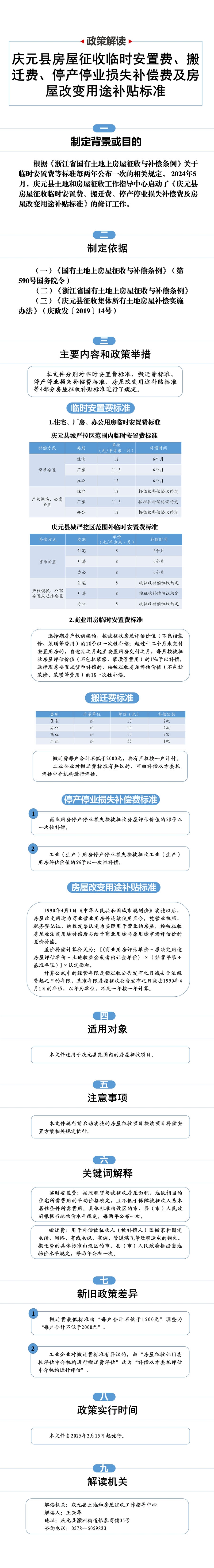 【文字+問答+圖解】《慶元縣房屋征收臨時安置費、搬遷費、停產停業損失補償費及房屋改變用途補貼標準》政策解讀