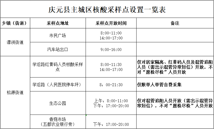 最新!慶元縣主城區(qū)核酸采樣點有調整