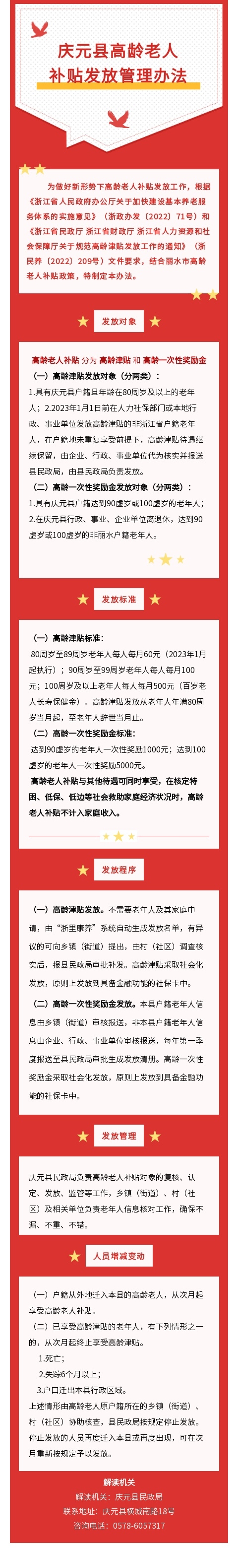 【文字+圖解】《慶元縣民政局 慶元縣財(cái)政局 慶元縣衛(wèi)生健康局關(guān)于印發(fā)慶元縣高齡老人補(bǔ)貼發(fā)放管理辦法的通知》的政策解讀