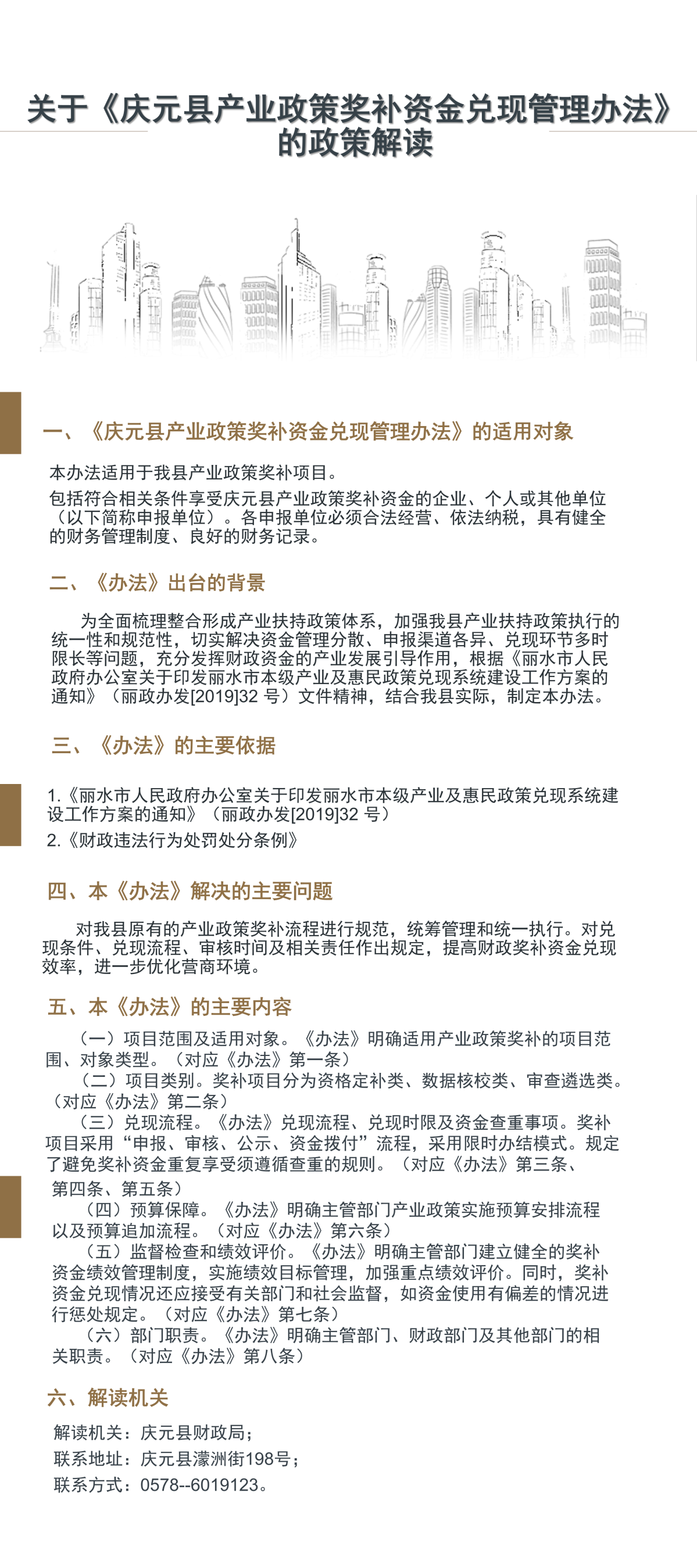 文字解讀:關于《慶元縣產業政策獎補資金兌現管理辦法》的政策解讀(文字版).docx