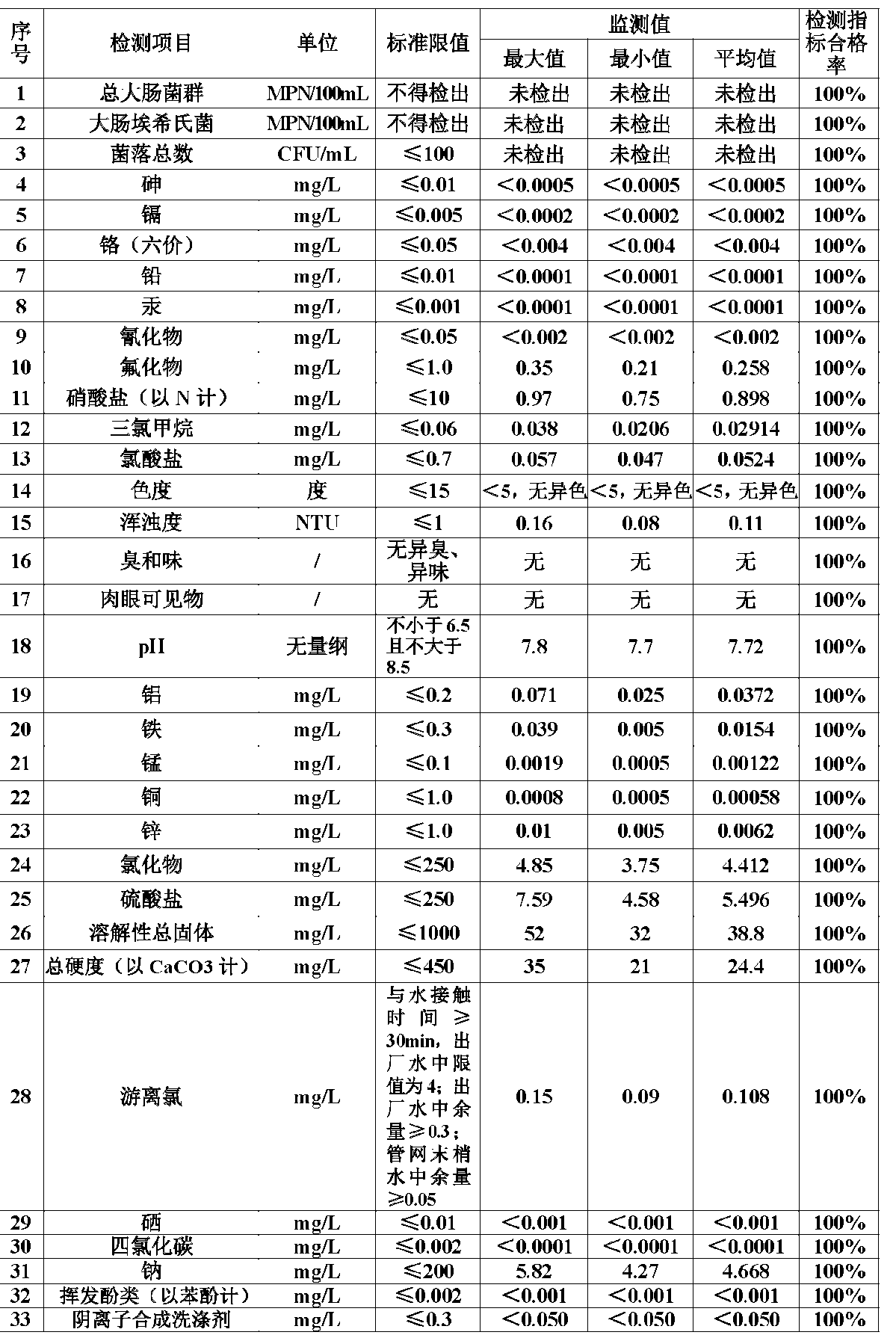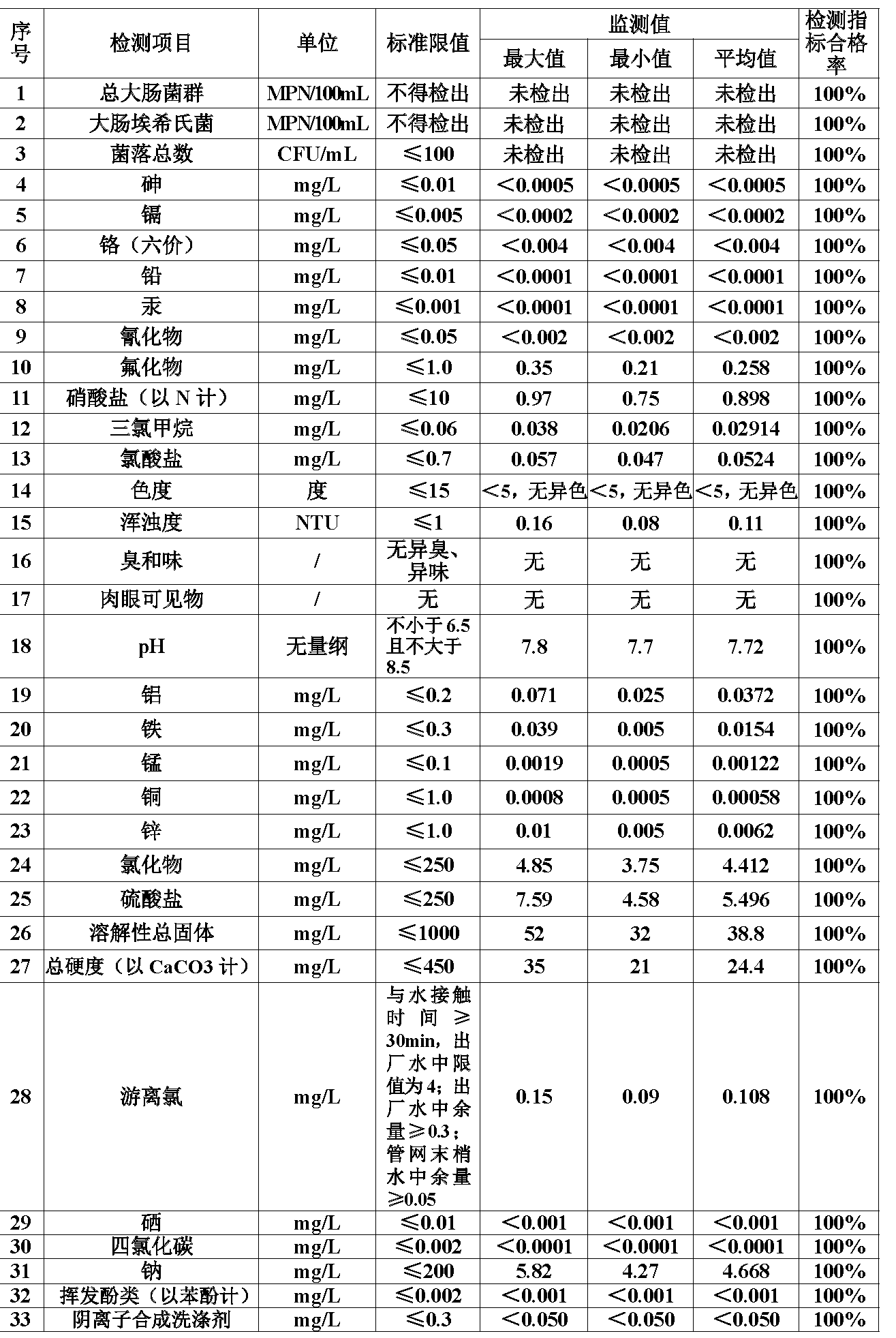 慶元縣竹口水廠2023年第2季度用戶水龍頭水質監測結果