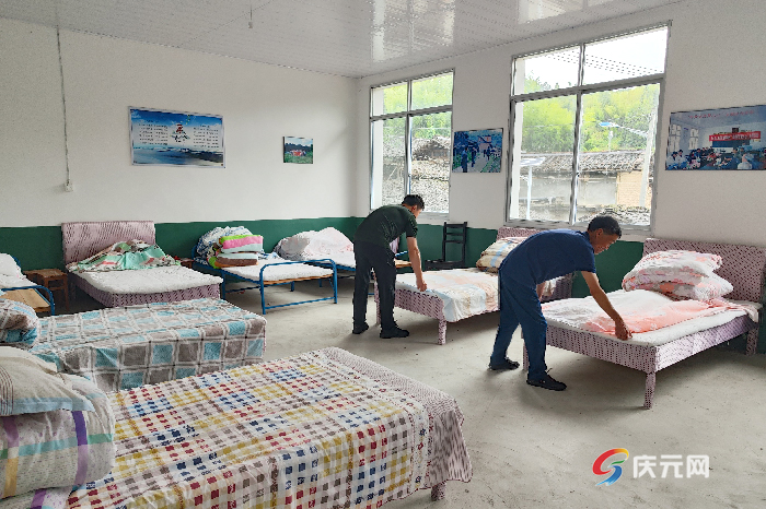 荷地鎮嚴陣以待、精準施力,迅速啟動應急預案,動員鎮村兩級全員下沉,全面周密細致做好防御臺風準備各項工作,全力保障人民群眾生命財產安全。為保證村民住得安心和舒心,在慶元縣荷地鎮際面村文化禮堂內,鎮村干部正在整理房間,鋪好床被,為避災百姓統一配備生活用品和食物。