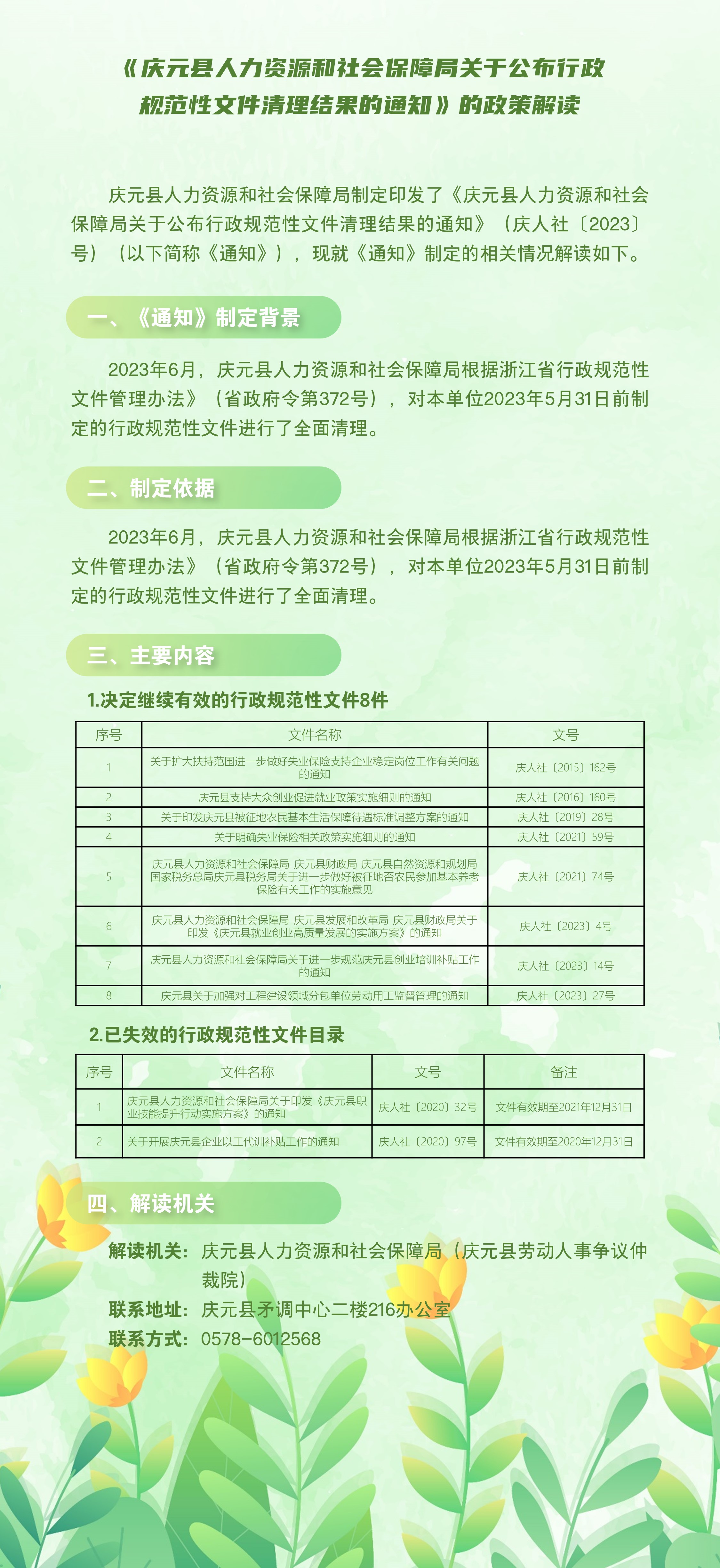 【文字版解讀】《慶元縣人力資源和社會保障局關于公布行政規范性文件清理結果的通知》政策解讀.docx