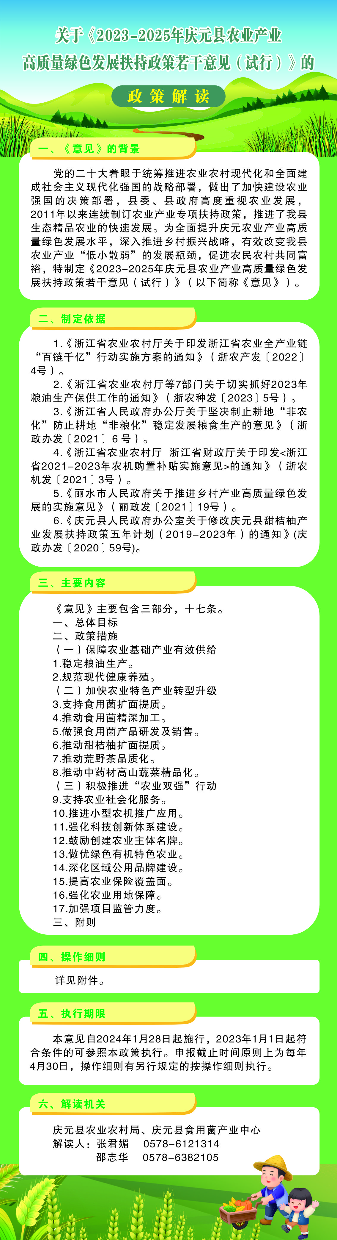 【音頻+圖解】慶元縣人民政府辦公室關于印發《2023-2025年慶元縣農業產業高質量綠色發展扶持政策若干意見(試行)》的通知的政策解讀