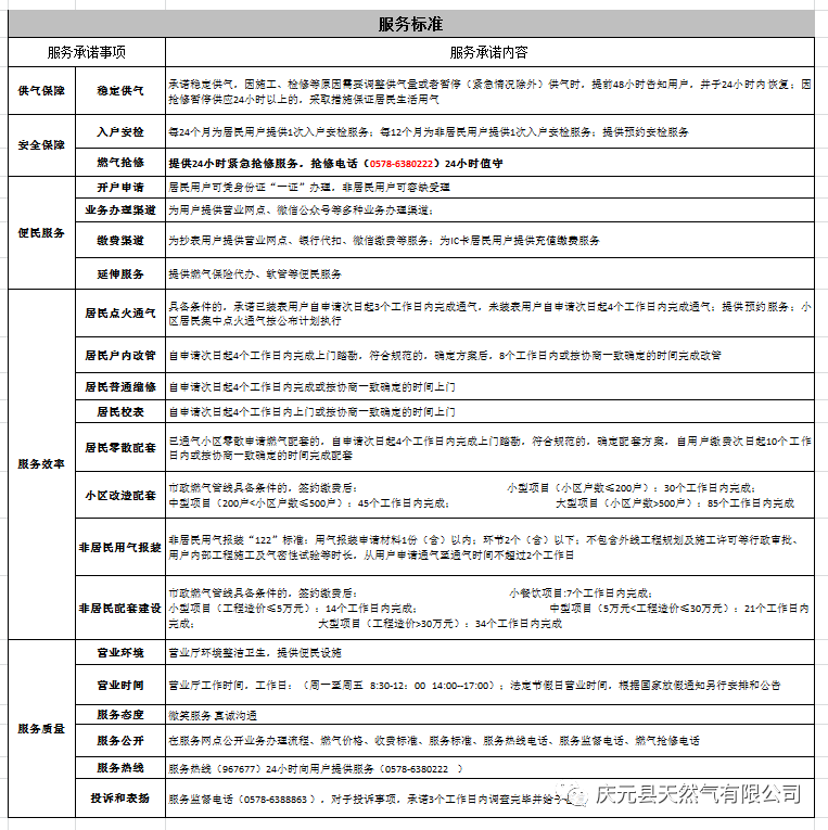 慶元縣天然氣有限公司業務辦理
