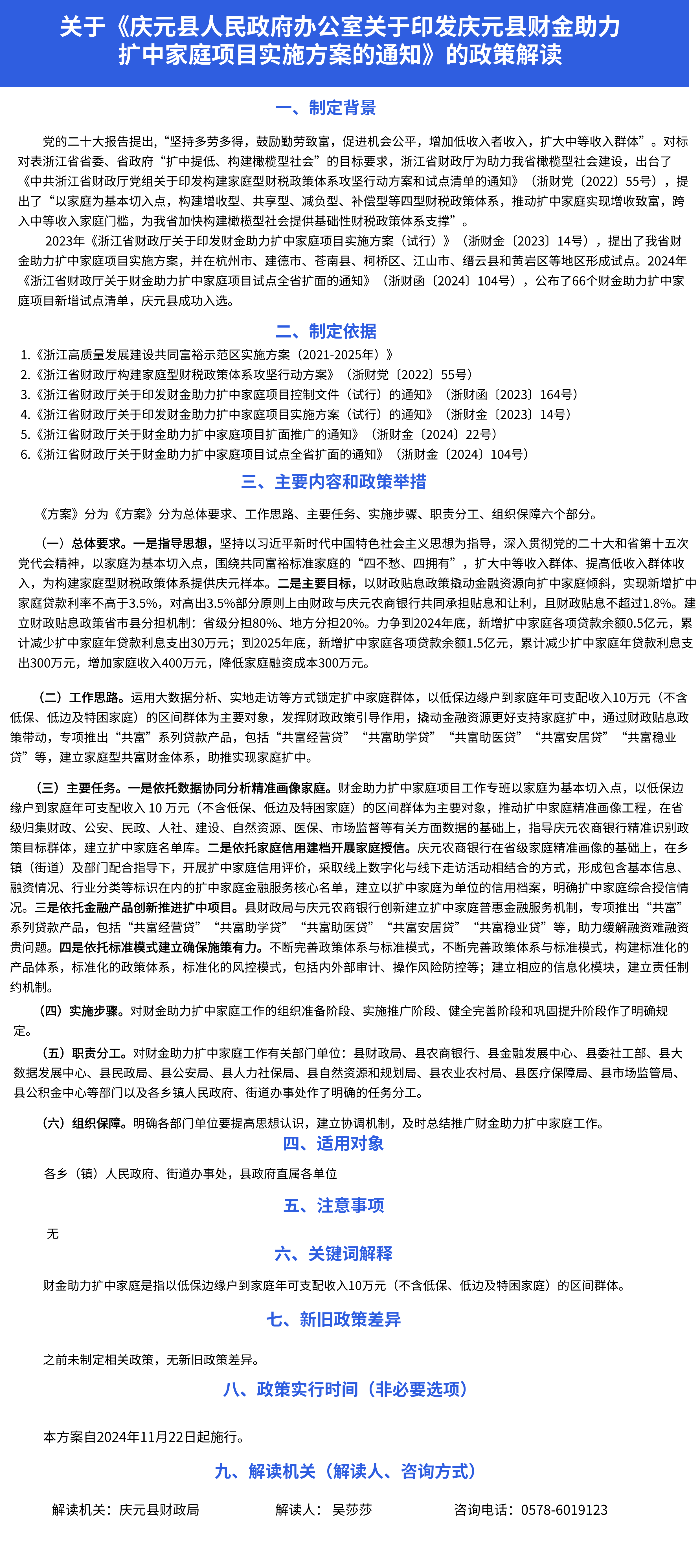 【圖解】《慶元縣人民政府辦公室關于印發慶元縣財金助力擴中家庭項目實施方案的通知》的政策解讀