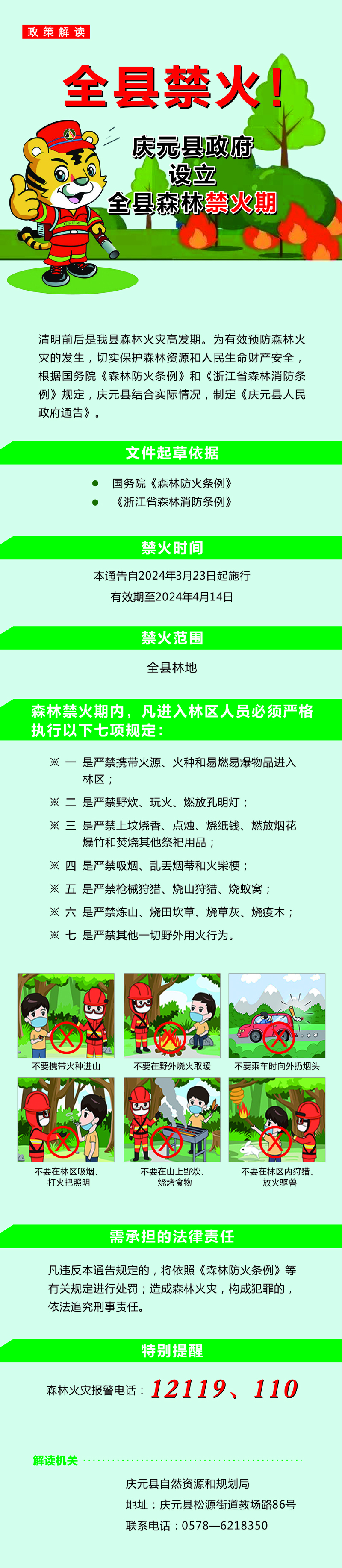 (一)自2024年3月23日(即公告發布日)起至2024年4月14日止,鑒于此時段為野外火源使用頻繁期及森林火災高風險時段,故設立為禁火期,