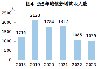 全年城鎮新增就業1039人,比上年減少46人。年末城鎮登記失業率為2.19%,3月末、6月末、9月末分別為1.80%、1.94%、2.11%,低于3.0%的調控目標。