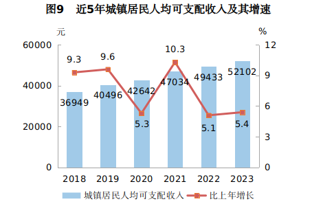 人均可支配收入 | 39158 | 7.4 | 52102 | 5.4 | 25874 | 8.9 |