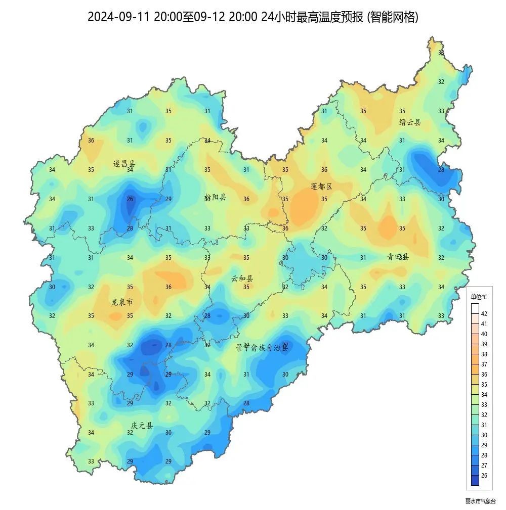 本周一場風雨帶來的降溫效果非常顯著,接下來到本周末,慶元的氣溫基本都維持在高溫線以下,天氣以陰有陣雨或雷雨為主。