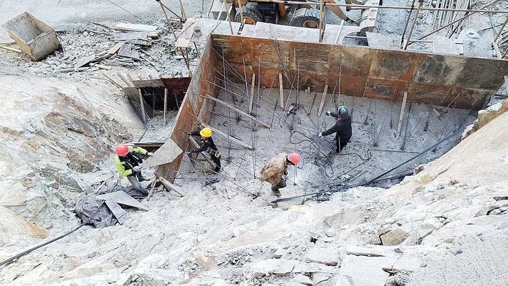 截至目前,項目大壩左右壩肩基礎開挖已完成,引水管道已鋪設15.5km,同時完成施工臨時道路建設、管理房場地平整及搭設和堆料場地建設等。