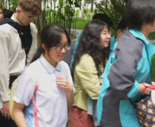 當(dāng)?shù)聡鴮W(xué)生踏入慶元中學(xué)的校園,立刻成為了焦點。慶中學(xué)子們以燦爛的笑容和溫暖的問候迎接遠(yuǎn)方的客人。“來到慶元,我特別興奮!早就聽說這里的學(xué)生熱情友好,我特別期待在慶元的旅程。”來自史坦普高級文理中學(xué)的學(xué)生Finley興奮地說道。在結(jié)對伙伴的帶領(lǐng)下,德國學(xué)生們漫步校園,他們紛紛拿出拍立得和手機(jī),在學(xué)校的池塘邊、亭子旁定格下一張張珍貴的合影。“慶元中學(xué)校園很大,我特別喜歡這個池塘,在我們學(xué)校都只有樹木,所以來到這里我們感到很震驚,但是真的感覺很酷。”Finley特別開心地向記者分享著自己的感受。