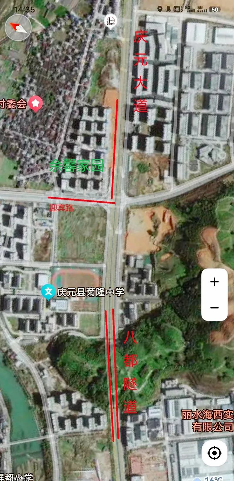 二、八都隧道洞口處需占道施工,慶元至八都方向,2道車道通行,改為1車道通行;八都至慶元方向,2道車道通行,改為1車道通行。