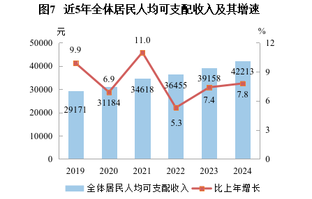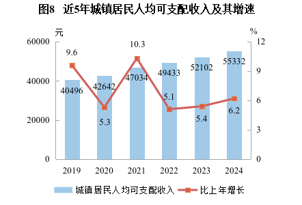 人均可支配收入 | 42213 | 7.8 | 55332 | 6.2 | 27970 | 8.1 |