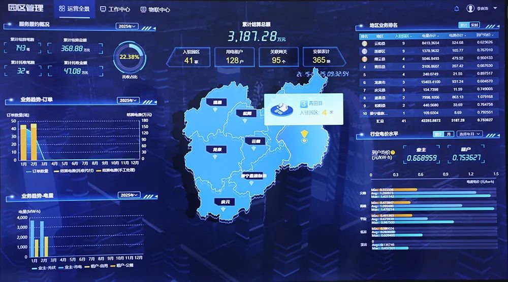 為解決第三方投資的分布式光伏、儲能及園區(qū)企業(yè)等新型經(jīng)營主體表后電費(fèi)結(jié)算難題,近年來,慶元創(chuàng)新引入“陽光掌柜”數(shù)字化結(jié)算平臺,為園區(qū)業(yè)主提供了一站式電費(fèi)結(jié)算服務(wù),全面提升企業(yè)能源管理效率,助力慶元綠色能源產(chǎn)業(yè)邁向新高度。