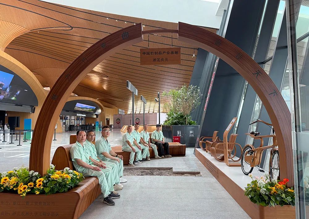 今年6月份,全球頂尖竹彎曲技術首次亮相麗水機場,由浙江三箭工貿有限公司與浙江農林大學家具專業教師王翔宇聯手打造的“曲竹藝術”展示空間,吸引了更多人關注。