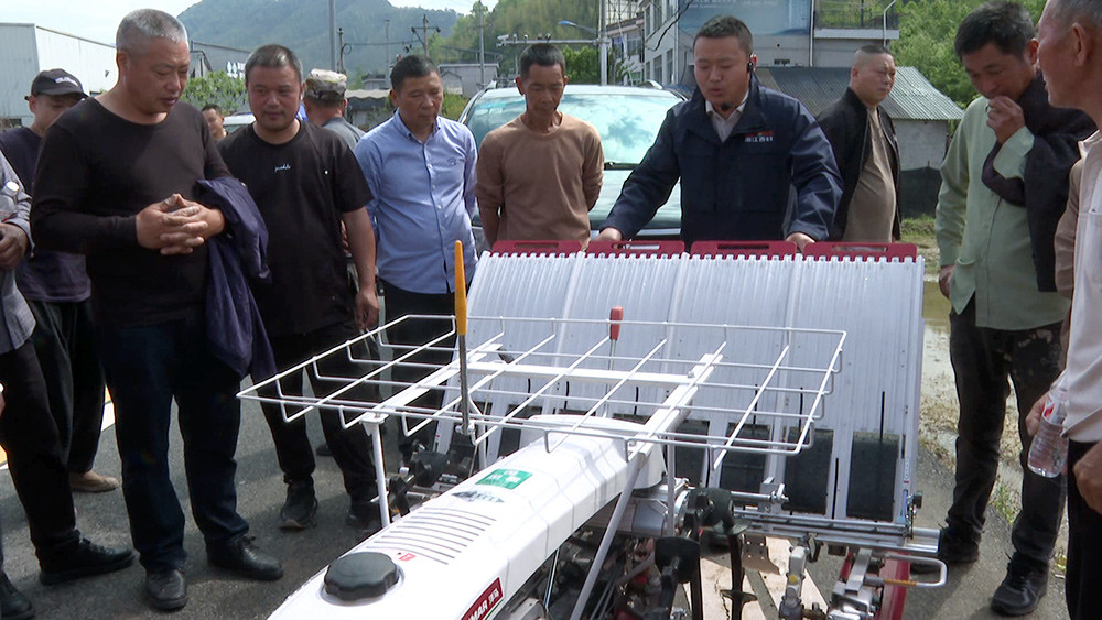 本次現場會旨在以機械化插秧替代傳統人工栽插,進一步提高生產效率、降低生產成本。會議開始前,由縉云縣裕豐農機有限公司提供的兩款插秧機就吸引了種糧大戶們的目光,他們圍在插秧機前,饒有興致地觀察各項細節。據介紹,這兩款插秧機分別為手扶式四行插秧機,以及乘坐式六行插秧機,產品質量好、耐用性高,適合慶元本地丘陵梯田的地形特點,因此受到了縣農業農村局的重點推廣。