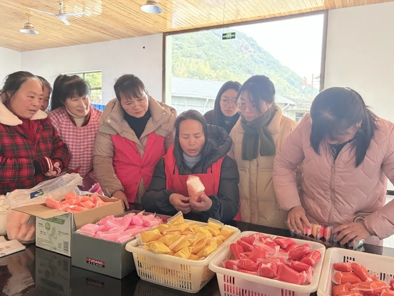 1月21日,淤上鄉山根村的“來料加工共富工坊”正式投入運營。一大早,40多位村民便圍坐在明亮整潔的車間里,開始了新一天的工作,一雙雙靈巧的手熟練地折疊、封裝,一個個文具產品快速成型,整個工坊洋溢著忙碌而踏實的氣氛。