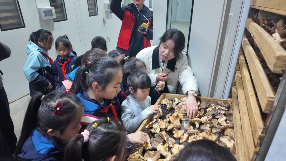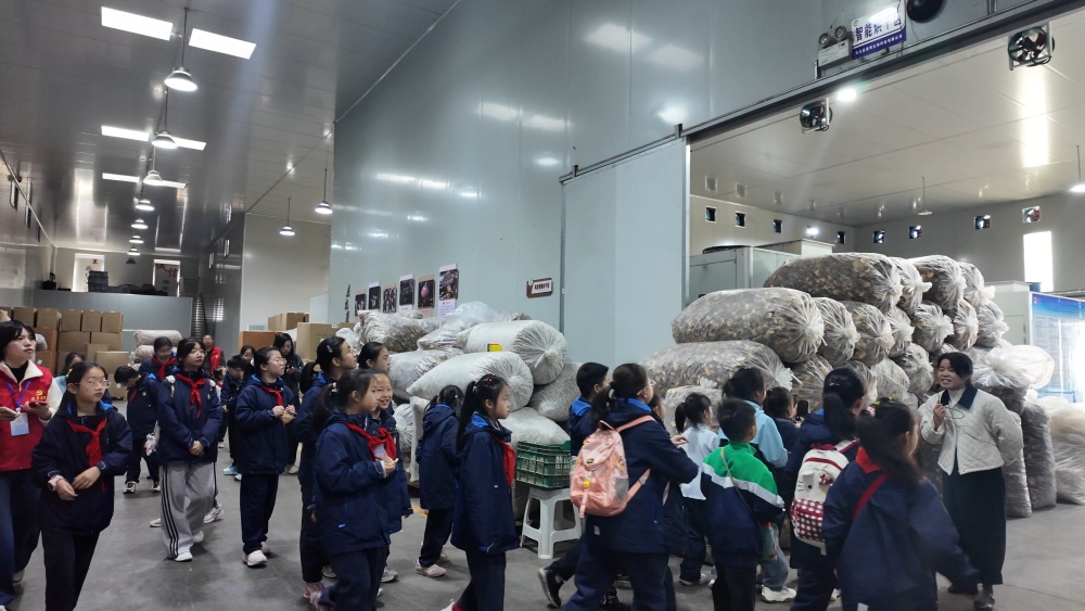 走進產(chǎn)業(yè)園,自動化菌棒生產(chǎn)線、智能溫控大棚、標準化培育車間依次呈現(xiàn)。從菌種培育、菌棒生產(chǎn),到菌絲生長、香菇采摘,再到加工保鮮,孩子們沿著產(chǎn)業(yè)鏈一路觀察、提問、記錄,詳細了解小小香菇從“培養(yǎng)基”到“餐桌美味”的完整過程。