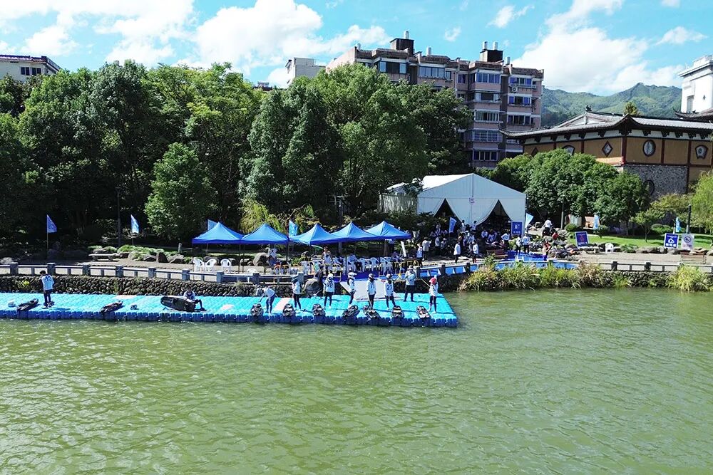 開(kāi)幕式結(jié)束后,與會(huì)領(lǐng)導(dǎo)和嘉賓共同觀(guān)看了精彩的水上飛人表演和練習(xí)賽。運(yùn)動(dòng)員們?cè)谇宄旱乃稍聪嫔峡v情馳騁,以高超的技藝、飽滿(mǎn)的激情和出色的體能,為現(xiàn)場(chǎng)觀(guān)眾呈現(xiàn)出一場(chǎng)力與美交織的水上運(yùn)動(dòng)盛宴。